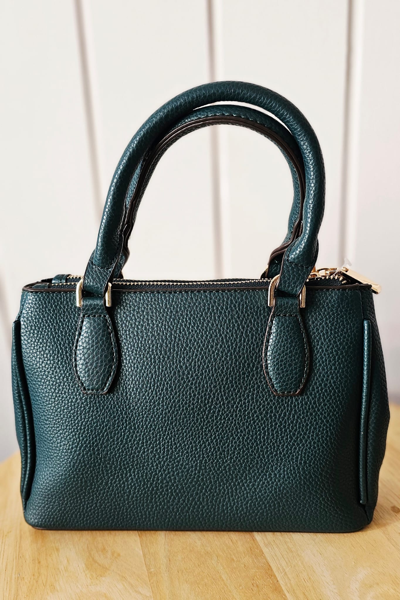 Modern, elegant und alltagstauglich – diese Handtasche überzeugt mit klarer Form, hochwertigem strukturiertem Kunstleder und goldfarbenen Details. Erhältlich in den Farben Petrol und Cognac.