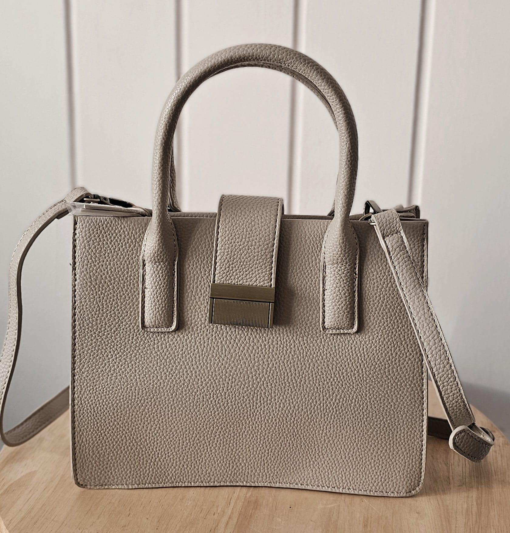 Eine moderne und vielseitige Handtasche aus hochwertigem strukturiertem Kunstleder. Wähle zwischen edlem Taupe oder tiefem Petrol. Mit stabilem Henkel, sicherem Magnetverschluss und praktischem Schultergurt – perfekt für Alltag, Büro und Freizeit.