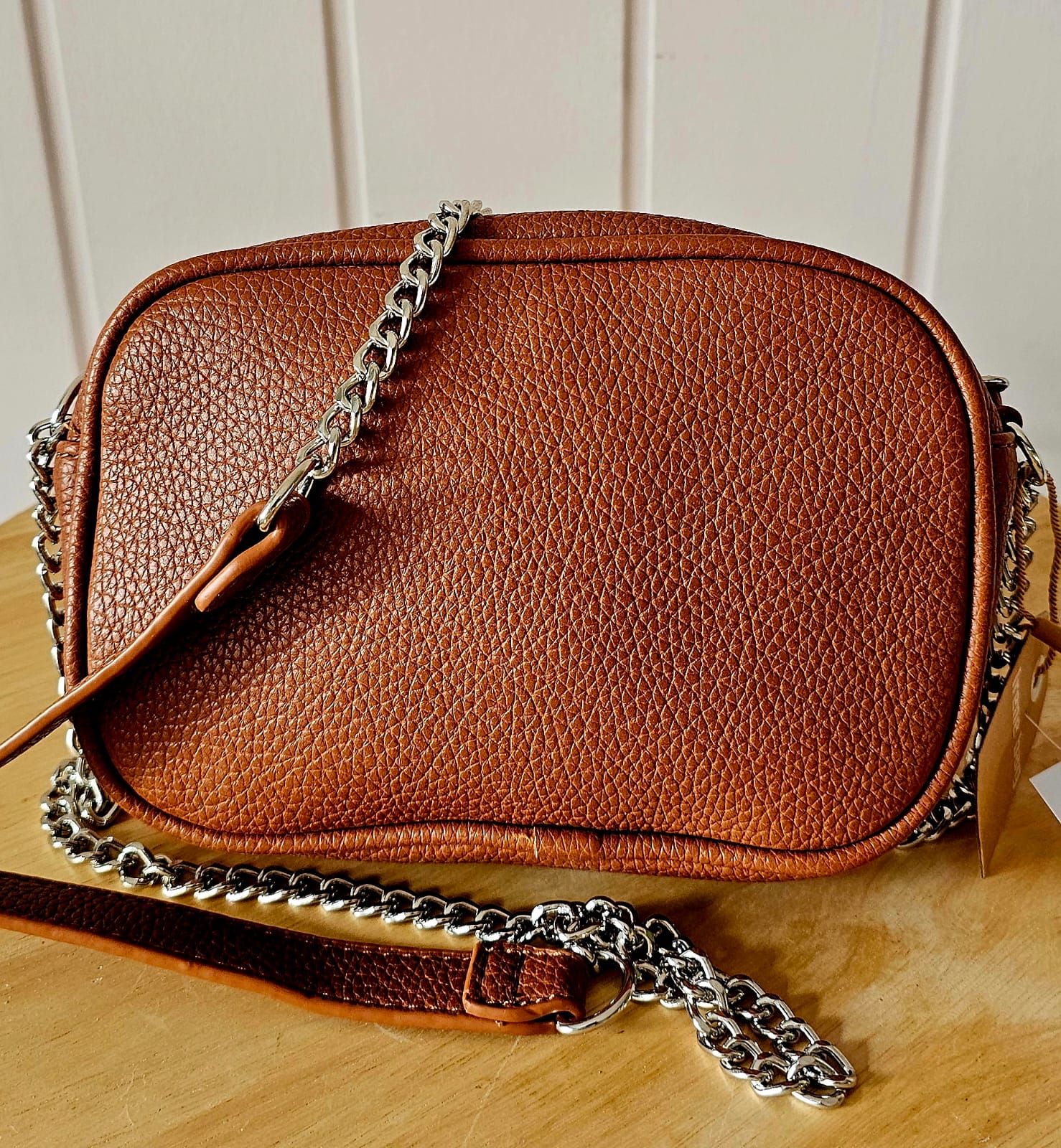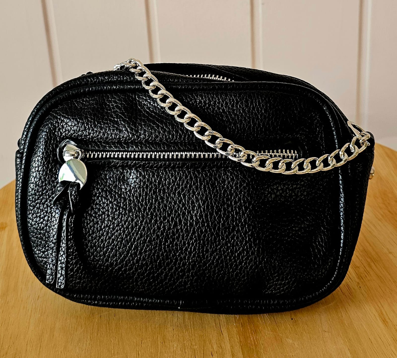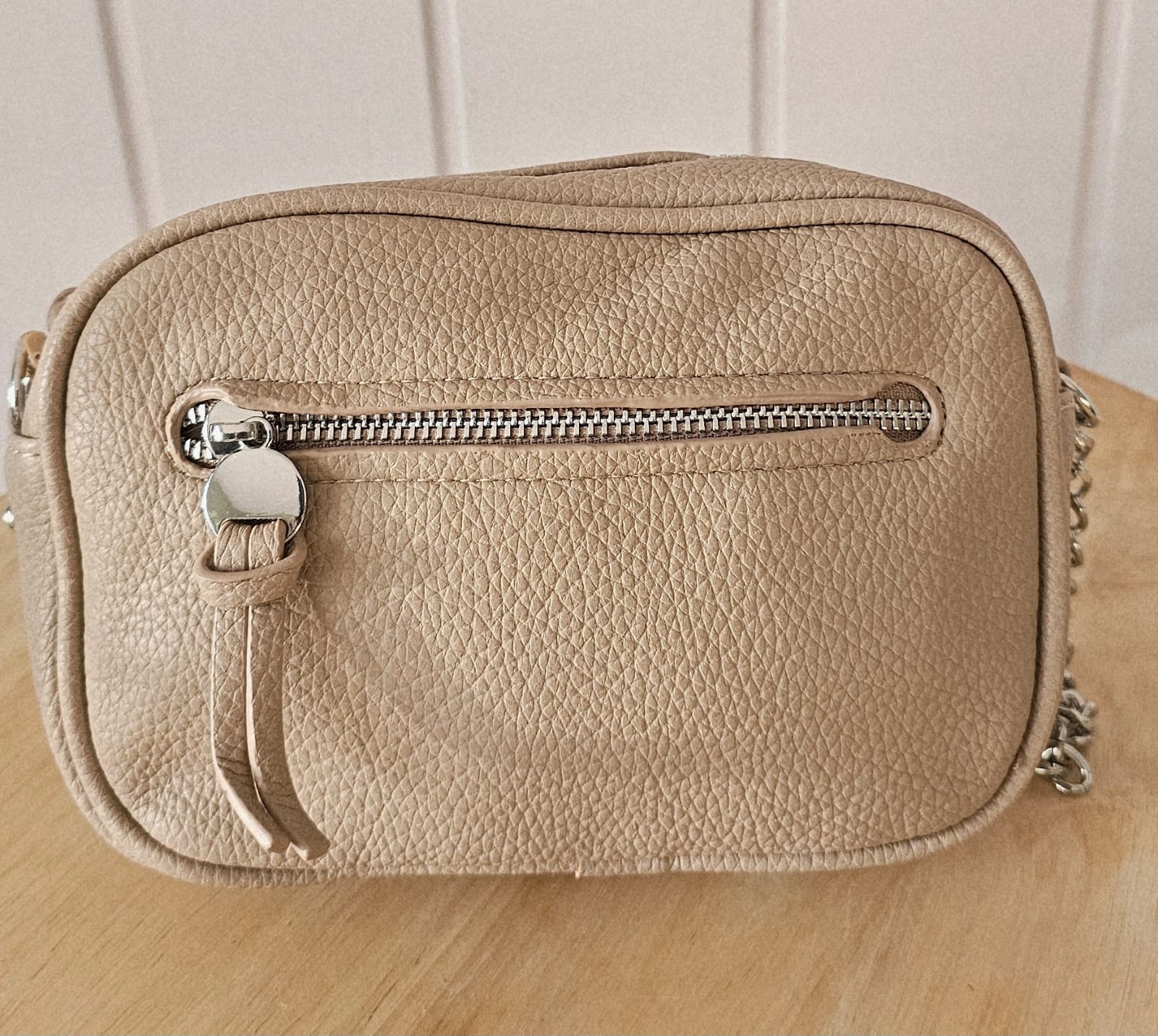 Diese kompakte Crossbody-Bag begeistert mit strukturiertem Kunstleder, modernen Kettendetails und einer praktischen Aufteilung. Perfekt für Alltag, Ausgehen & City-Looks.