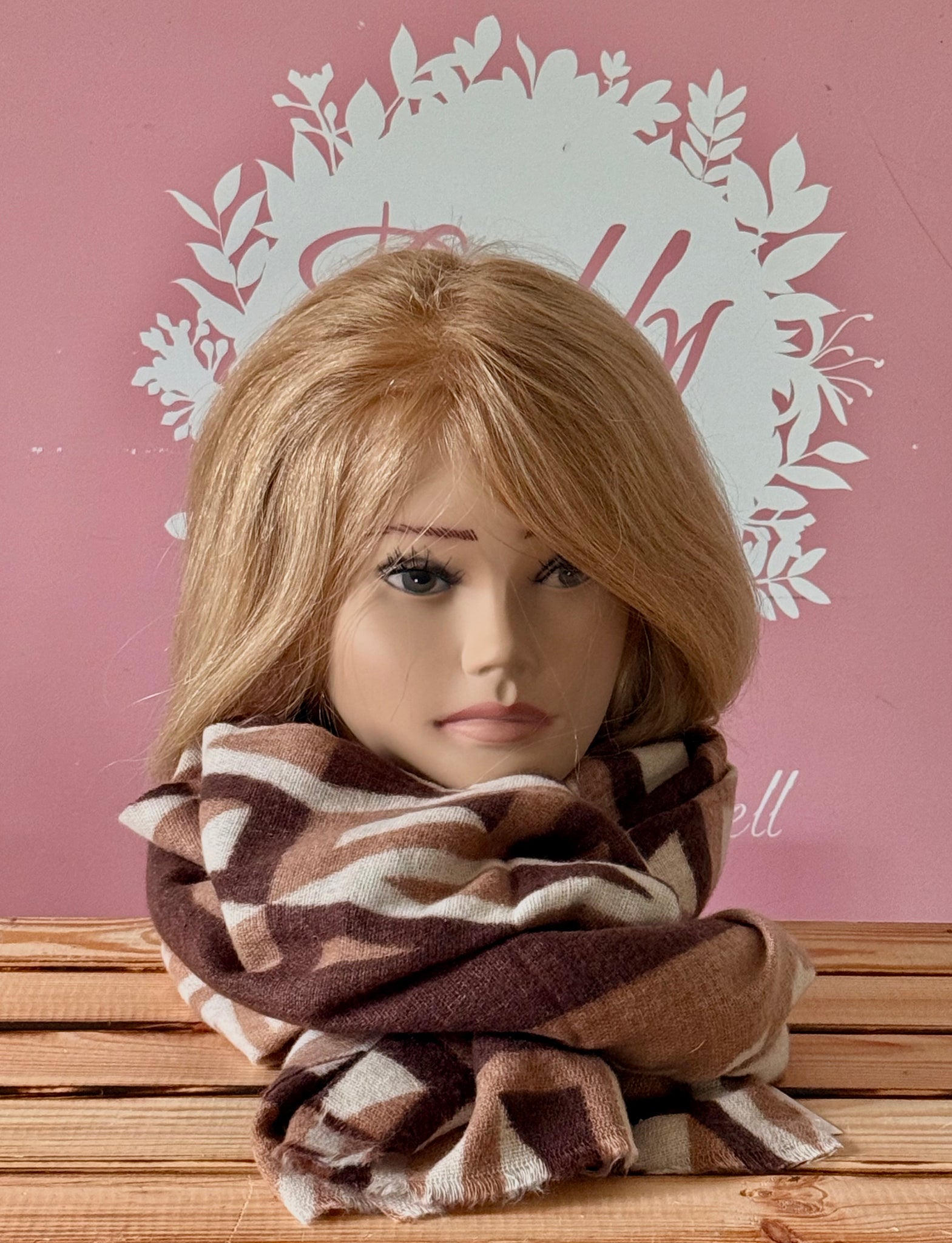 🧣 Karierter Schal in Beige & Braun – weicher Schal aus Viskose mit Zierstich