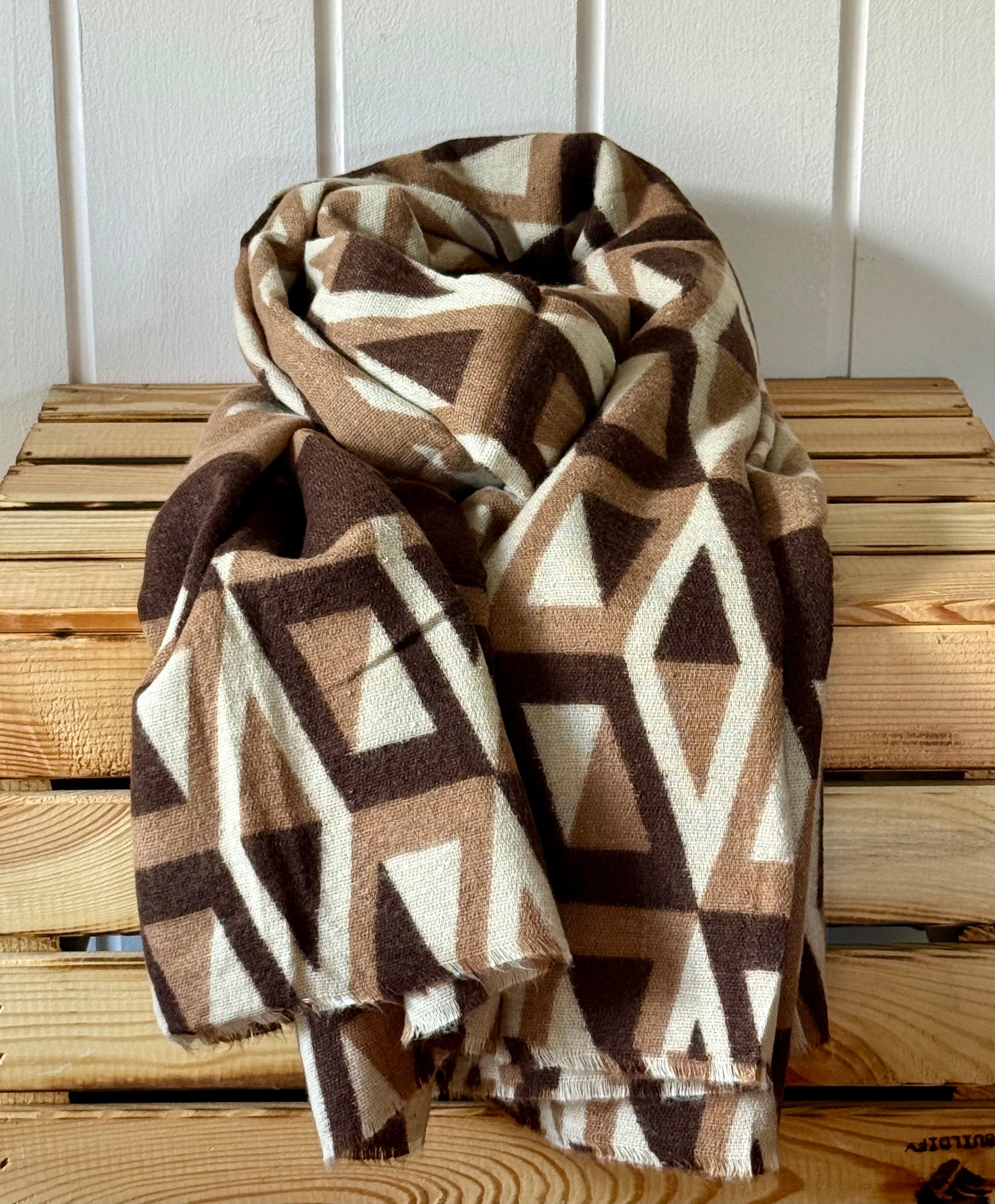 Schal mit geometrischem Muster in Braun & Beige | Weiches Tuch aus Viskose | ca. 180 × 84 cm