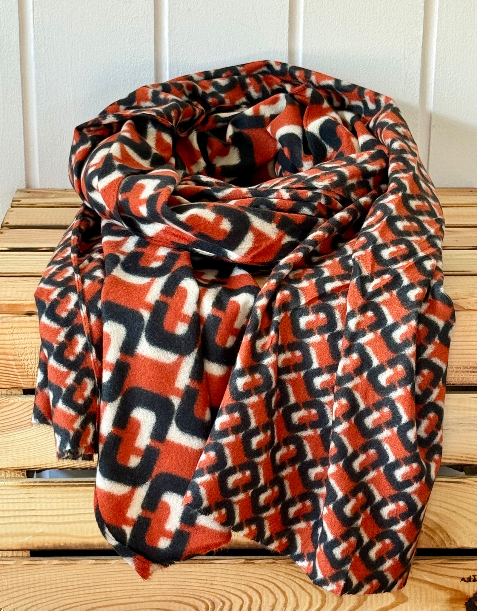 Weicher Schal in Orange, Creme, Schwarz | Warmes Tuch aus Viskose | ca. 190 × 60 cm | Edler Herbst- & Winterschal