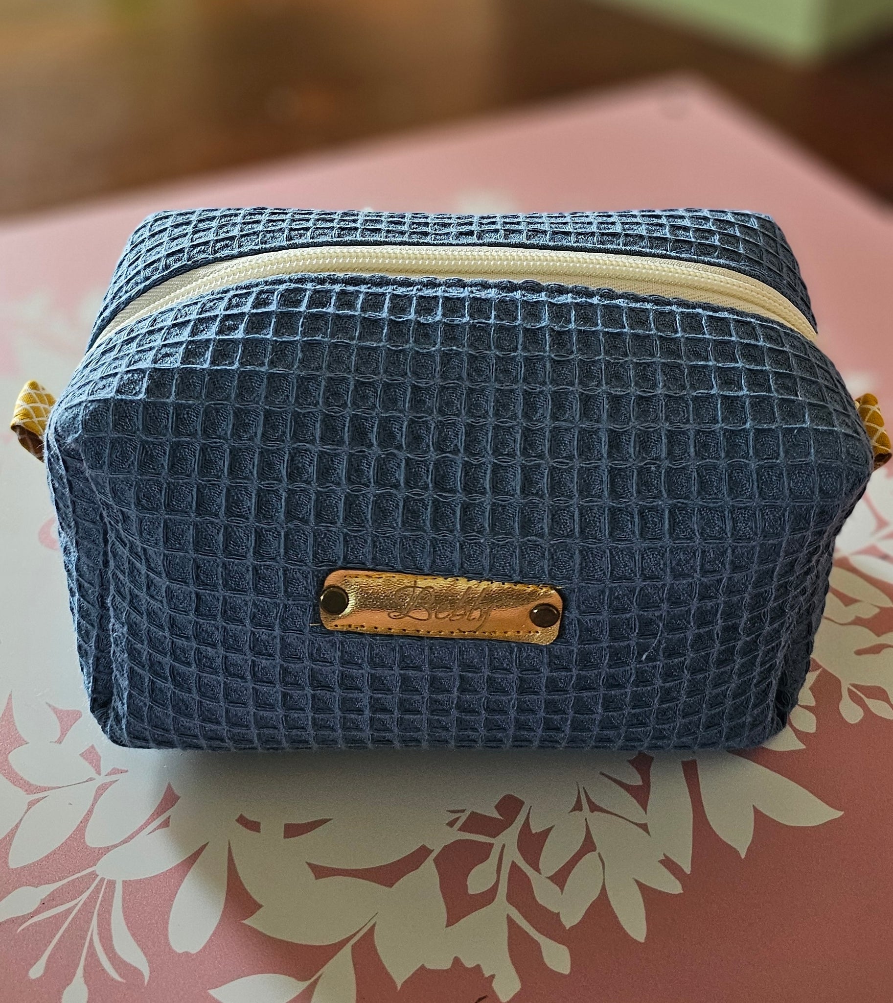 Diese handgefertigte Kosmetiktasche aus hochwertigem Waffelpique (100 % Baumwolle) ist der ideale Begleiter für Alltag und Reisen. Dank der Stabilisierung mit Volumenvlies bleibt sie formschön, strapazierfähig und angenehm gepolstert.
