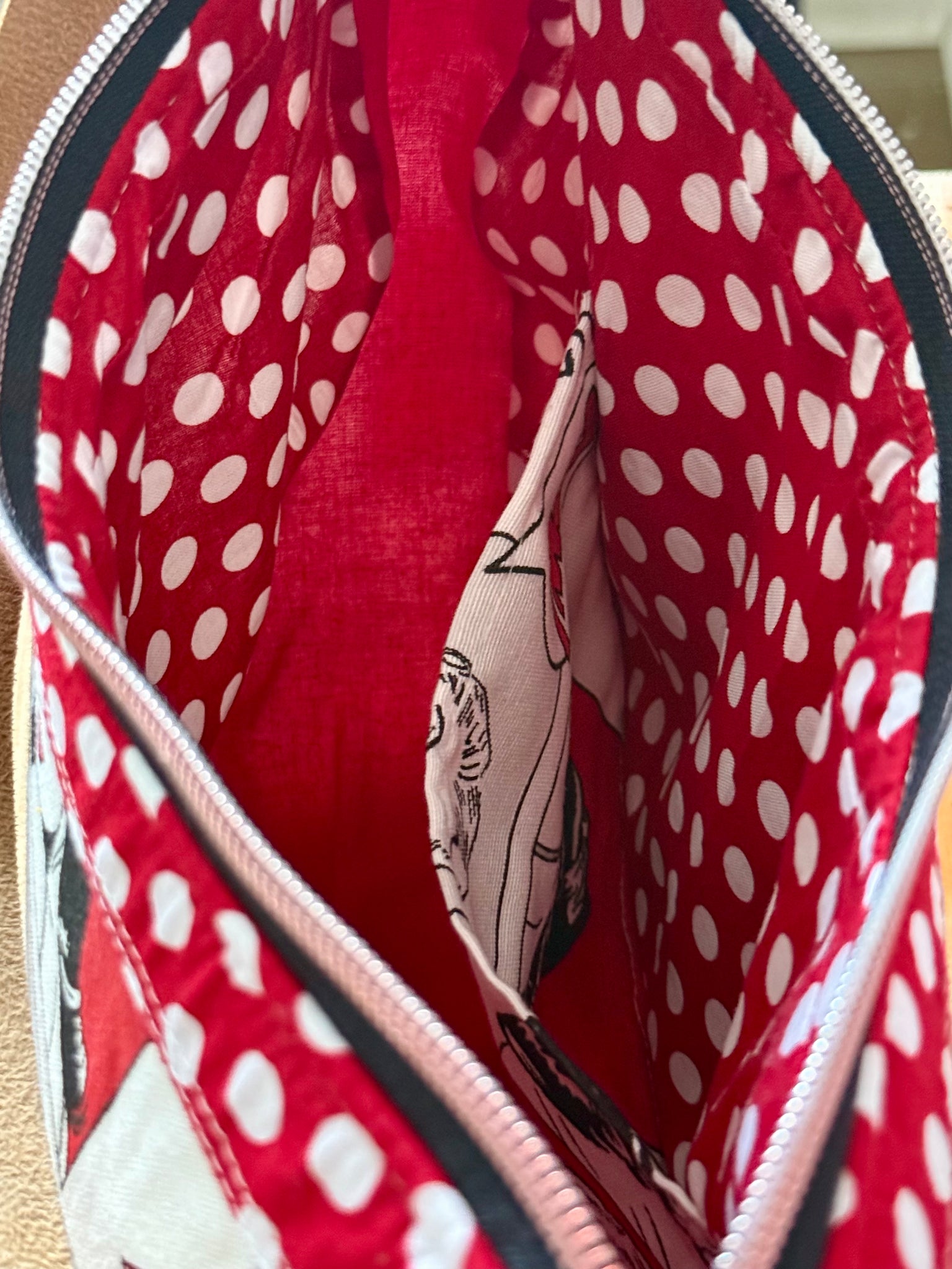 Mondtasche im Comic-Design – handgefertigte Schultertasche aus Dekostoff